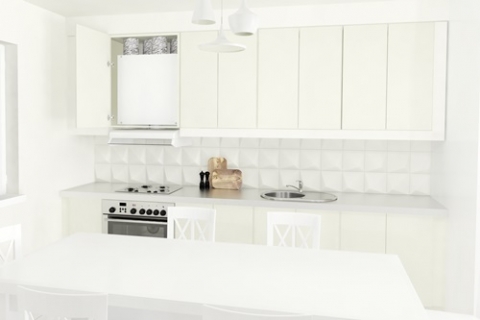 Unit is designed for installation in place of the kitchen cabinet and has a cooker hood connection (accessory).