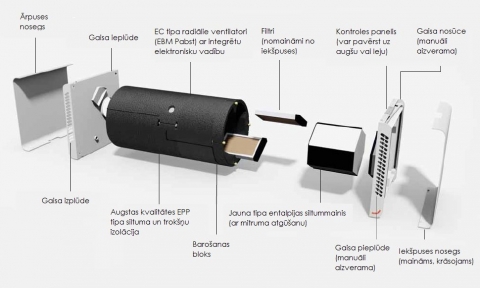 Ideāls risinājums vienai istabai un nelielām dzīvojamajām platībām, pielietojams kā renovējot, tā arī būvējot jaunas ēkas: Decentralizētā ventilācijas iekārta Zehnder ComfoSpot 50 pārsteidz ar kompaktajiem izmēriem un augstajiem veiktspējas rādītājiem. Galvenā priekšrocība ir unikālais entalpijas siltummainis, kas lielāko daļu iekštelpu mitruma (kam ir augsts siltuma enerģijas saturs), nodod ienākošajam, svaigajam āra gaisam, tā atgūstot arī siltumu. Tāpēc iekārtā neveidojas kondensāts un ārējā ēkas fasāde paliek tīra.
