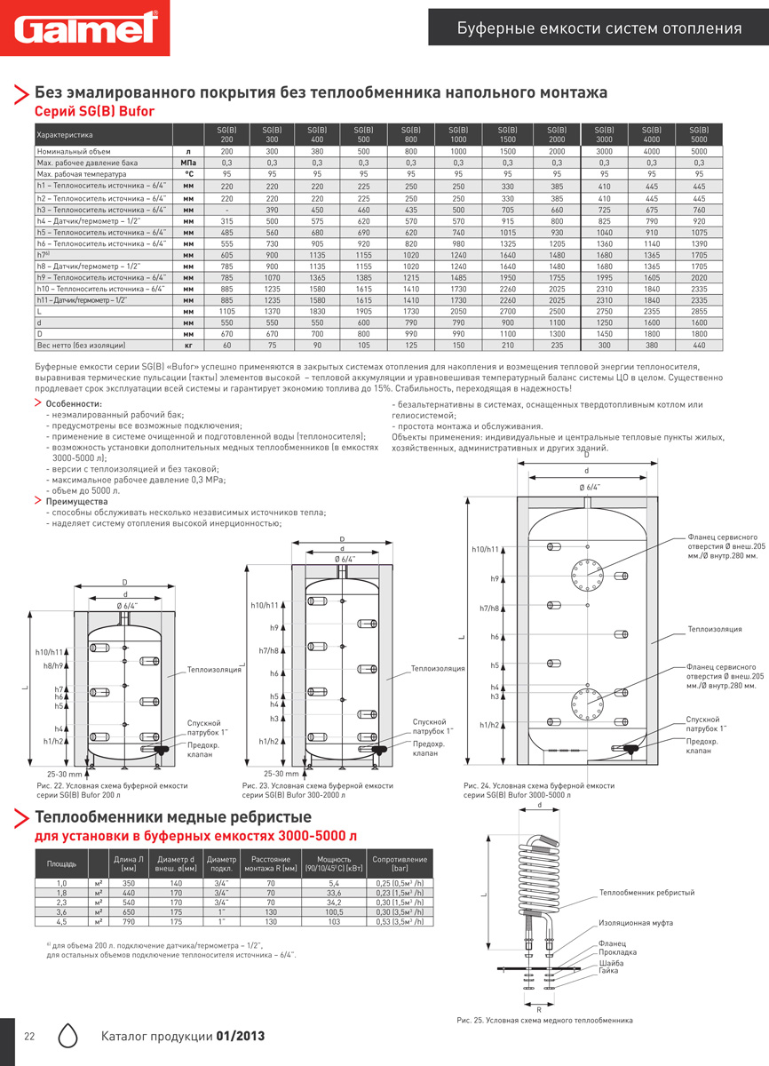 Буфферные емкости серии SG(B) "Bufor" успешно применяются в закрытых системах отопления для накопления и возмещения тепловой энергии теплоносителя, выравнивая термические пульсации элементов высокой тепловой аккумуляции и уравновешивая температурный баланс системы отопления в целом.